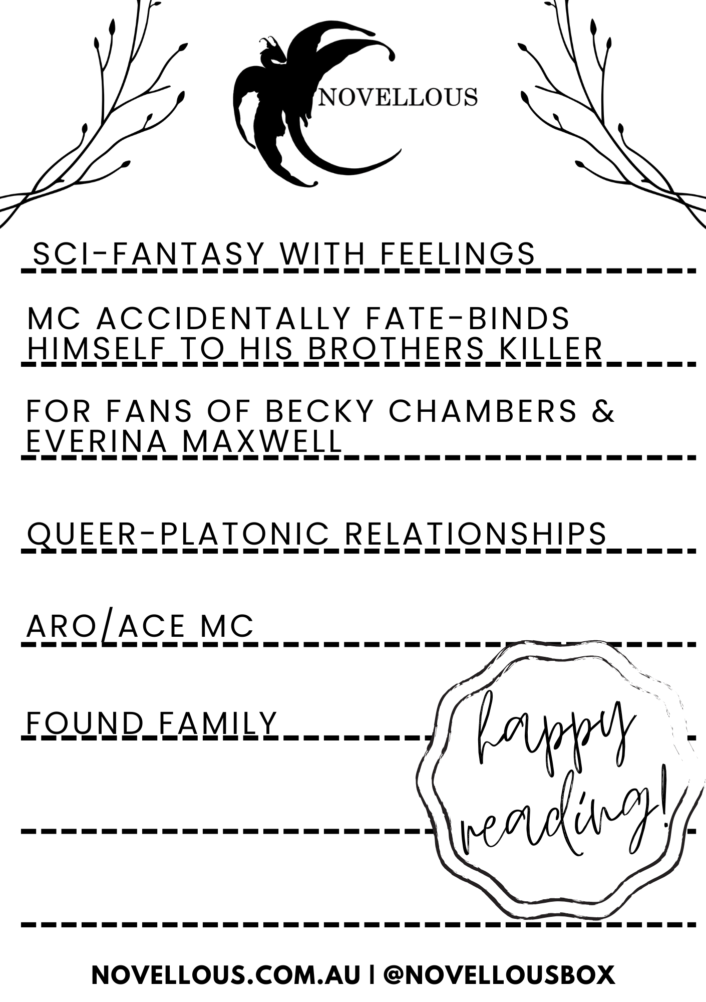 Novellous is a quarterly fantasy (sometimes sci-fi sneaks in too!) subscription that tries to amplify the midlist- the quality books in publishing that don't get all the marketing and publicity attention. It's most often where you'll find the LGBTQIA+ books and authors of colour. The good stuff!