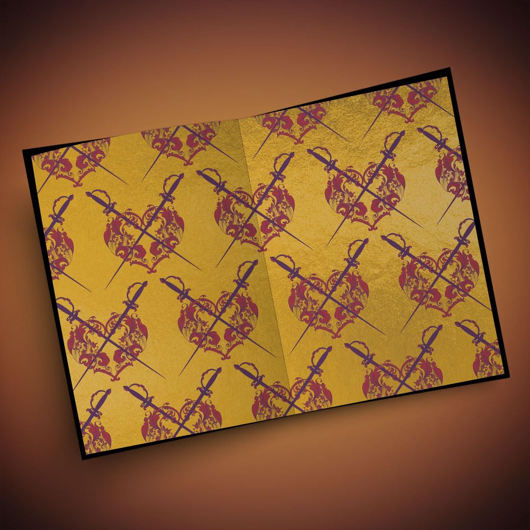 A gorgeous deluxe edition of Swordcrossed by Freya Marske, featuring sprayed edges and gorgeous endpages.
