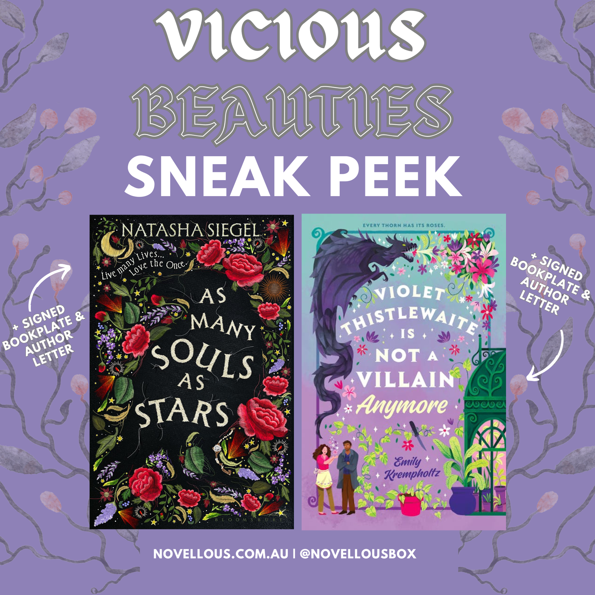 The paperback edition of VIOLET THISTLEWAITE IS NOT A VILLAIN ANYMORE by Emily Krempholtz (RRP $24.99) which comes with an author letter + signed bookplate. This book features a powerful plant witch and a grumpy alchemist who must work together to save their quiet town from a magical plague. Funny, cozy, emotional and redemptive.